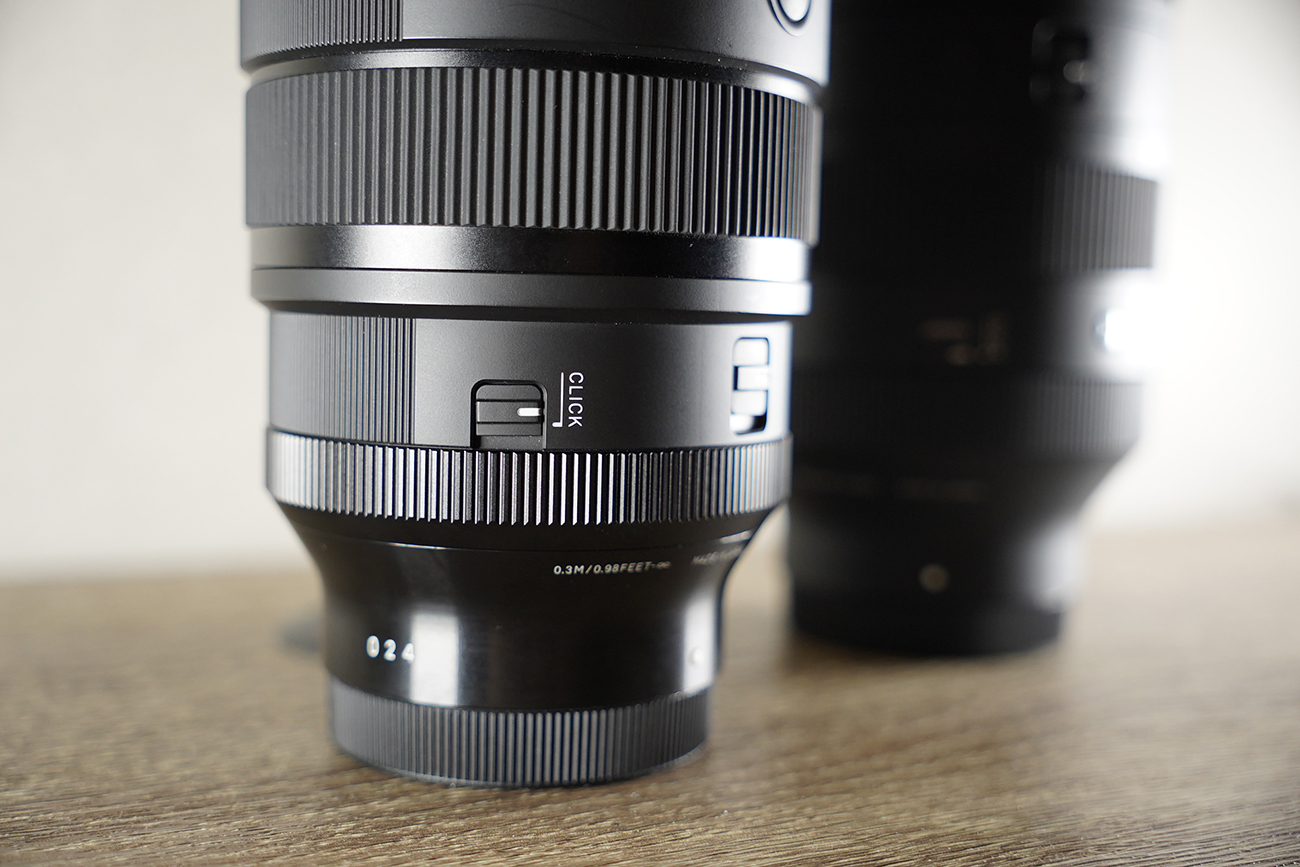 SIGMA 28-45mm F1.8 DG DN Art のクリックは AF/MF切り替えボタンの下についております。